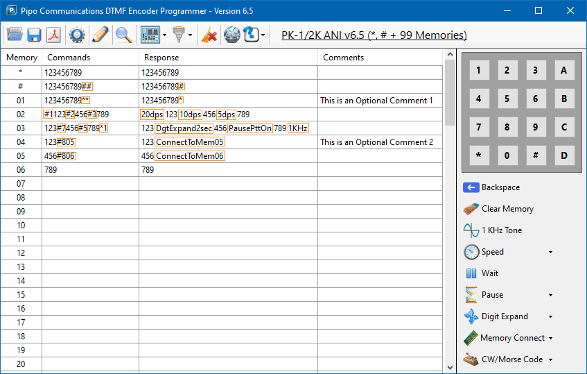 All Pipo Communications DTMF encoders with memory can be programmed directly using their keyboard. This program has been created to make programming easier.